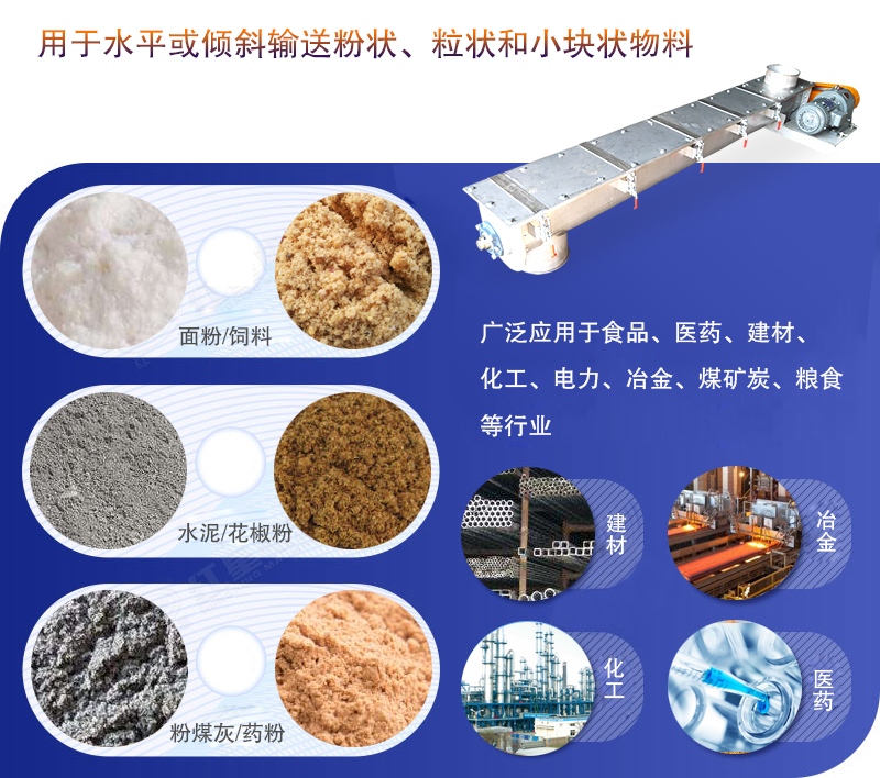 不銹鋼螺旋輸送機(jī)廣泛應(yīng)用于食品、醫(yī)藥、建材、化工、電力、冶金、煤礦炭、糧食等行業(yè),適用于水平或傾斜輸送粉狀、粒狀和小塊狀物料,尤其適合食品、醫(yī)藥行業(yè),可以滿足行業(yè)衛(wèi)生標(biāo)準(zhǔn),可輸送諸如面粉、飼料、花椒粉、藥粉等對(duì)衛(wèi)生要求嚴(yán)格的物料。
