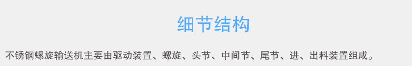 不銹鋼螺旋輸送機(jī)主要由驅(qū)動(dòng)裝置、螺旋、頭節(jié)、中間節(jié)、尾節(jié)、進(jìn)、出料裝置組成。