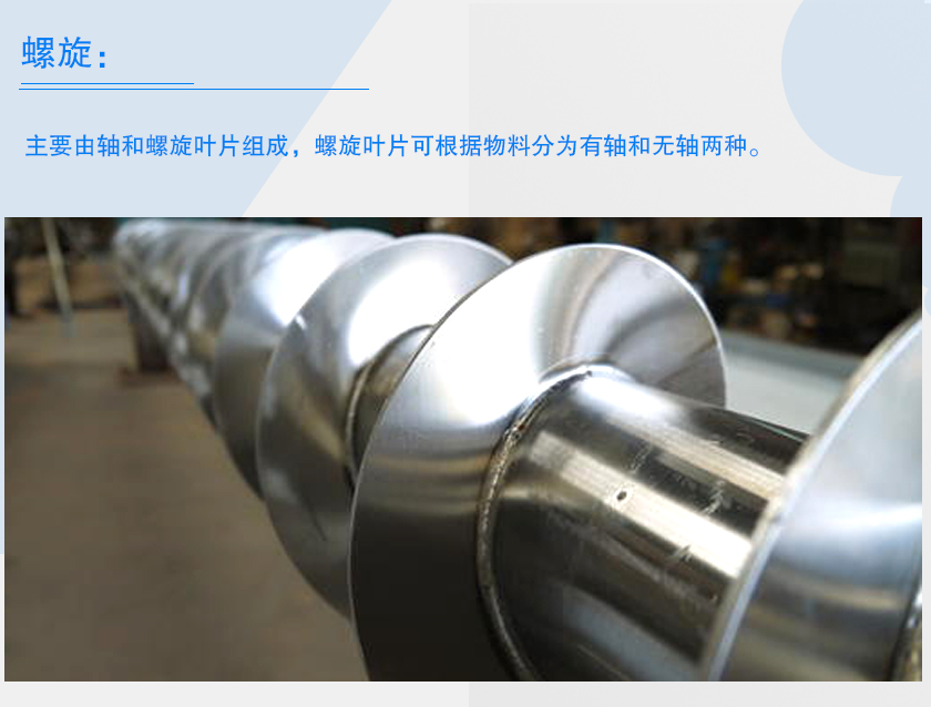 螺旋:主要由軸和螺旋葉片組成,螺旋葉片可根據(jù)物料分為有軸和無(wú)軸兩種。