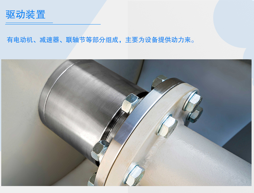 驅(qū)動(dòng)裝置:有電動(dòng)機(jī)、減速器、聯(lián)軸節(jié)等部分組成,主要為設(shè)備提供動(dòng)力來(lái)。