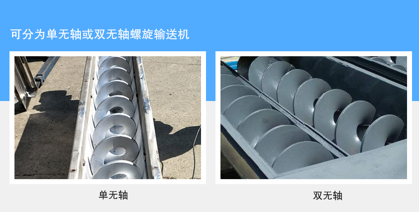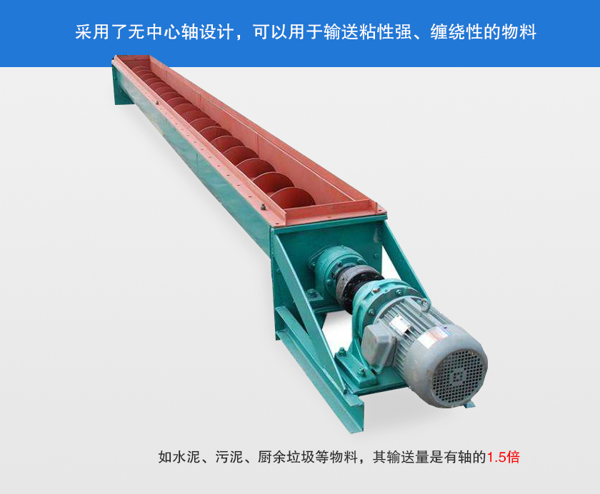 無軸螺旋輸送機采用無中心軸設計,可輸送傳統有軸螺旋輸送機和皮帶輸送機不能或不易輸送的物料,如顆粒狀和粉狀物料、濕的和糊狀物料、半流體和粘性物料、易纏繞和易堵塞物料、有特殊衛生要求的物料。