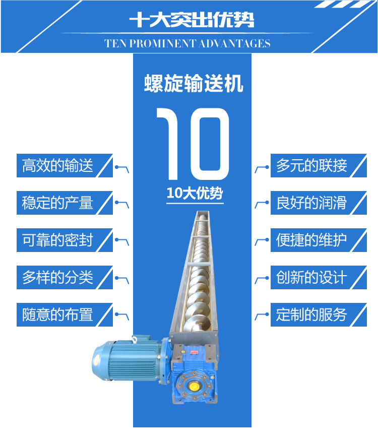 4、全封閉結構和易清洗的螺旋表面,減少了物料在整個輸送過程中受到污染,改善了其工作環境;